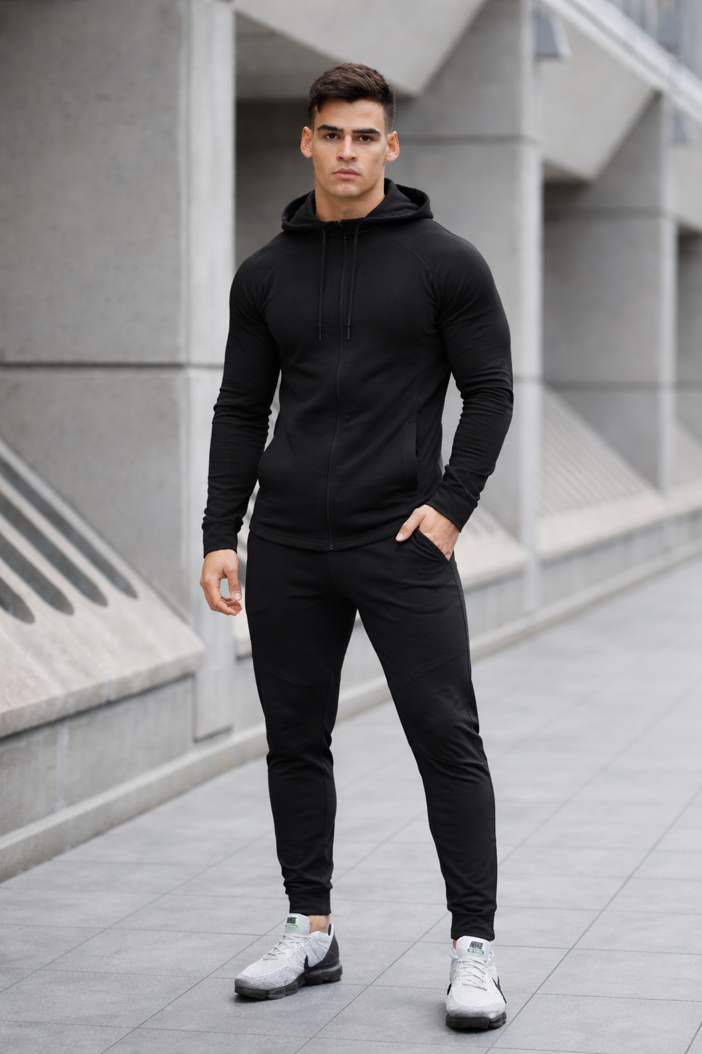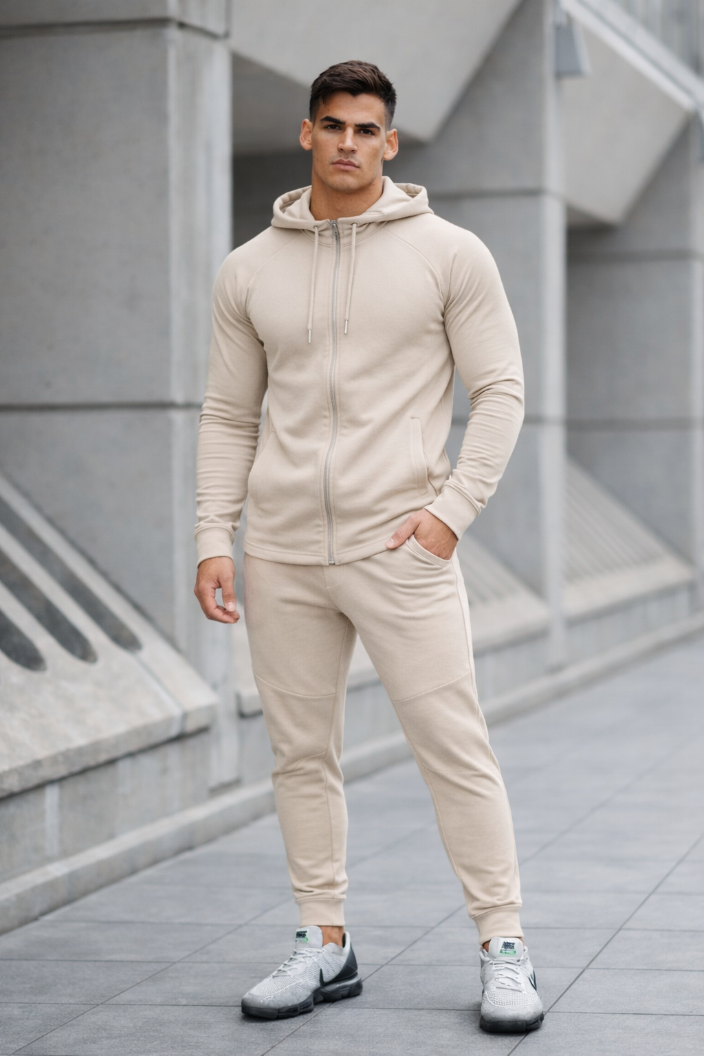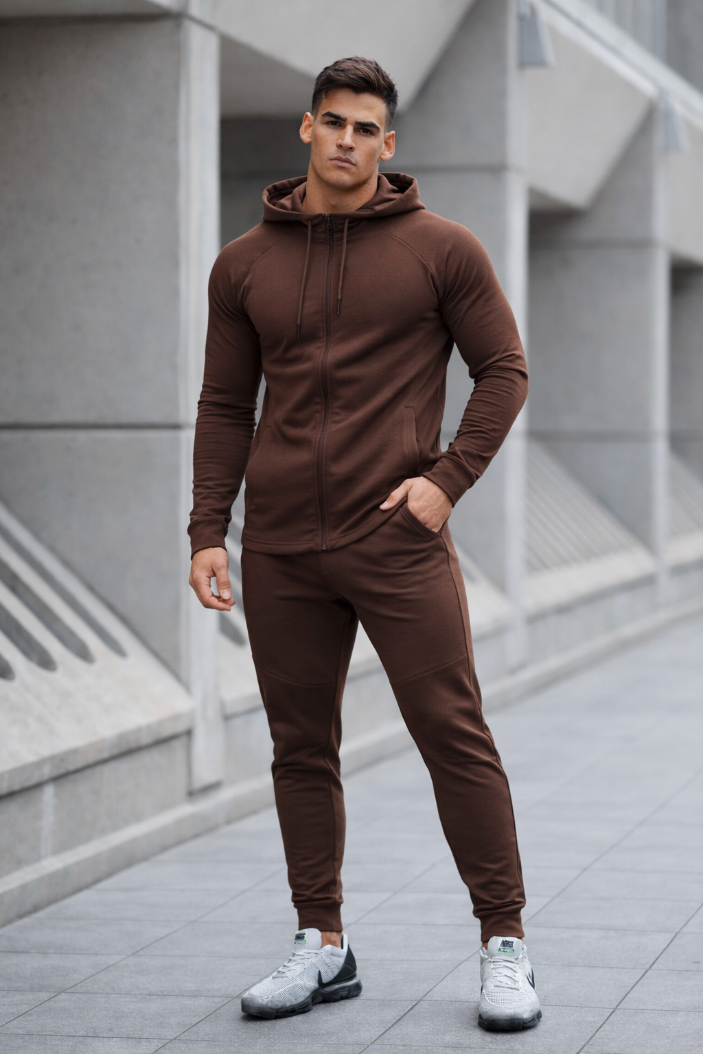 Dit trainingspak voor heren is ontworpen voor mannen die altijd in beweging zijn — van boardroom tot boarding gate. Het combineert het ontspannen comfort van high-performance loungewear met de strakke uitstraling van een moderne executive.